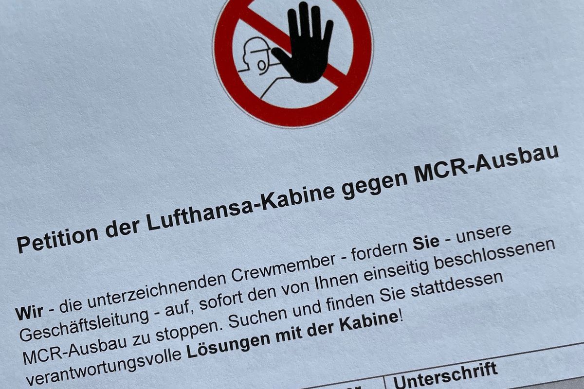 Flugbegleiter sammeln UnterschriftenLufthansa nutzt die MCR-Abteile seit 13 Jahren in den A330 und A340-300. In den Teilflotten Airbus A350-900, Boeing 747-400 und 747-8 sind festinstallierte Ruhebereiche für die Crew vorhanden. Die ersten Flüge ohne MCR-Container werden laut Ufo "noch in diesem Monat" in Frankfurt abheben.