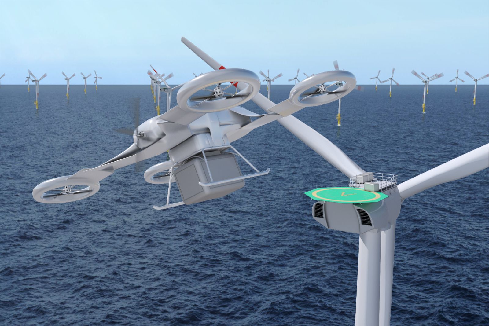 Ein ganz ähnliches Konzept verfolgen aktuell German Airways und der Flugtaxi-Hersteller Wingcopter. Die Zeitfracht-Airline will 115 Transportdrohnen von Typ Wingcopter 198 für Wartungseinsätze an Offshore-Windparks beschaffen.