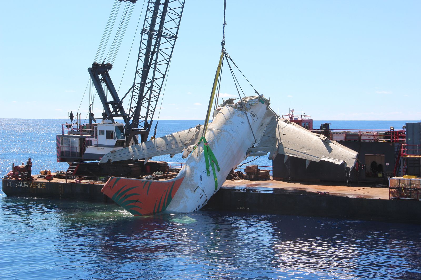 Die 46 Jahre alte Boeing versinkt im Meer, die Besatzung wird von einem Helikopter der Coast Guard gerettet.
