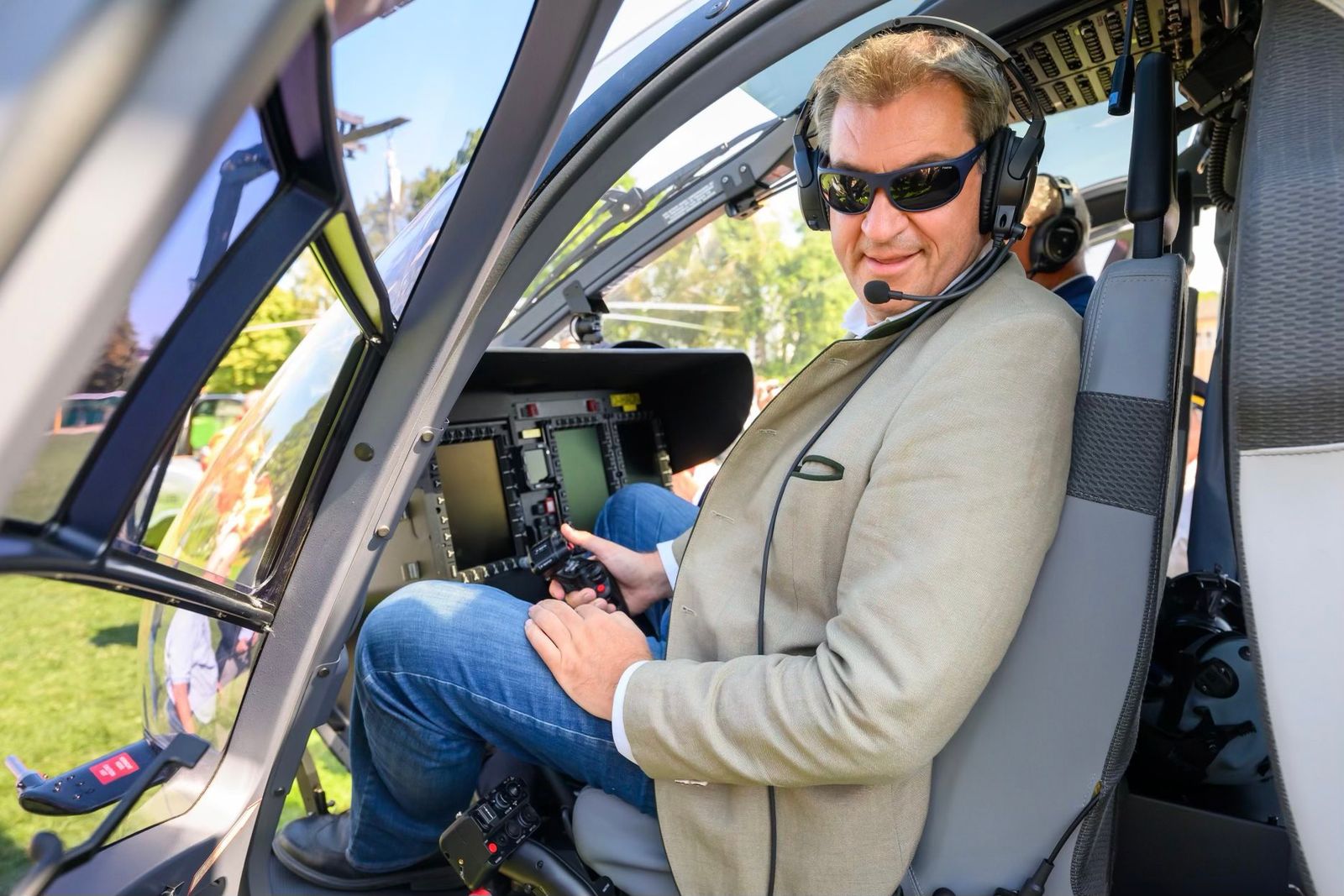 "Sie sind schneller, fliegen länger und fliegen weiter", sagte Ministerpräsident Markus Söder (CSU), der auch zu dem Termin gekommen war und mit Sonnenbrille und Kopfhörern im Helikopter-Cockpit für die Fotografen posierte. Er nannte den neuen Hubschrauber-Typ ein "Vier-Tonnen-Kraftpaket für die bayerische Polizei". Denn die neuen Hubschrauber haben ein "maximales Abfluggewicht" von 3.800 Kilo. Bei den alten waren es 2980 Kilogramm.