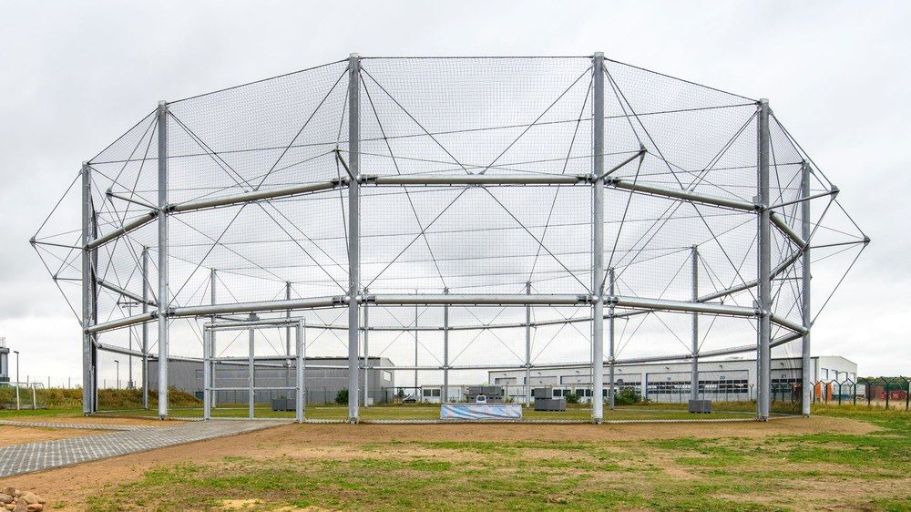 Die Konstruktion ist von einem Netz umschlossen, sodass Forscher sicher in der Flugverbotszone des Flughafens fliegen dürfen.