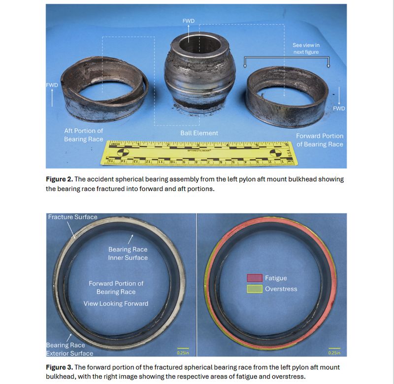 Die US-Flugunfallbehörde NTSB ist in den Wrackteilen auf einen gebrochenen Lagerring gestoßen. "Der kugelförmige Lagerring, der normalerweise aus einem Stück besteht (...), wurde in einen vorderen und einen hinteren Teil zerbrochen aufgefunden", teilte das NTSB am Mittwoch in einem Update zu den Ermittlungen (PDF) mit.